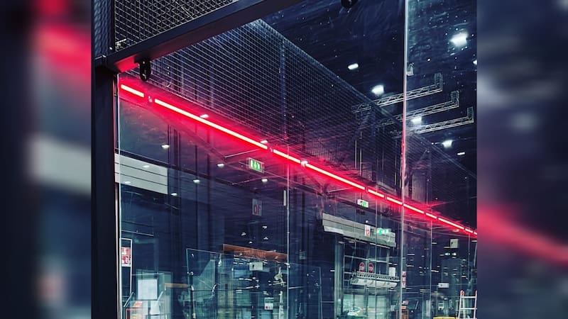 ¿Cómo funciona? Este láser se encarga de controlar si ha habido un primer bote en el suelo, y la superficie sensible a la presión de la pelota resaltaría el contacto con el vidrio, pero solo se iluminaría el sistema si el láser no ha percibido un bote previo en el suelo.