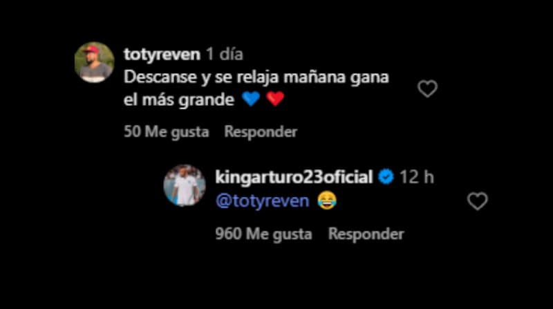 Uno de las respuestas que recibió el King vino de forofos de Universidad de Chile, que no dejaron pasar la oportunidad de dejarle un recado al futbolista. “Descanse y relájese, mañana juega el más grande”, le escribió un usuario, identificado como fanático de la U. Eso, en la antesala del choque entre el cuadro laico y Estudiantes de La Plata.