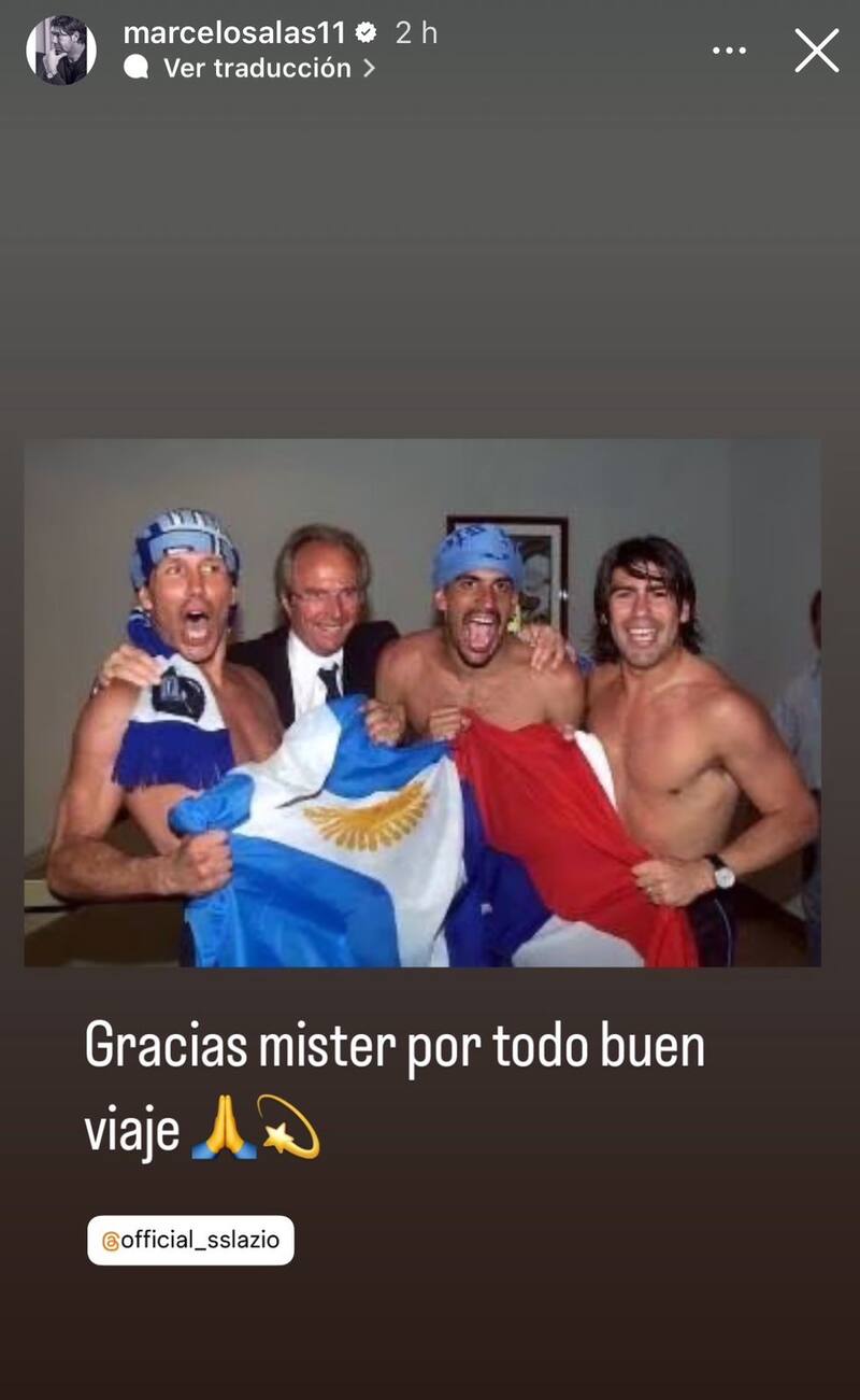Este lunes, una vez conocida la lamentable noticia, Marcelo Salas recordó al DT a través de sus redes sociales. “Gracias, mister, por todo. Buen viaje”, compartió en las historias de Instagram, junto a una fotografía del adiestrador.