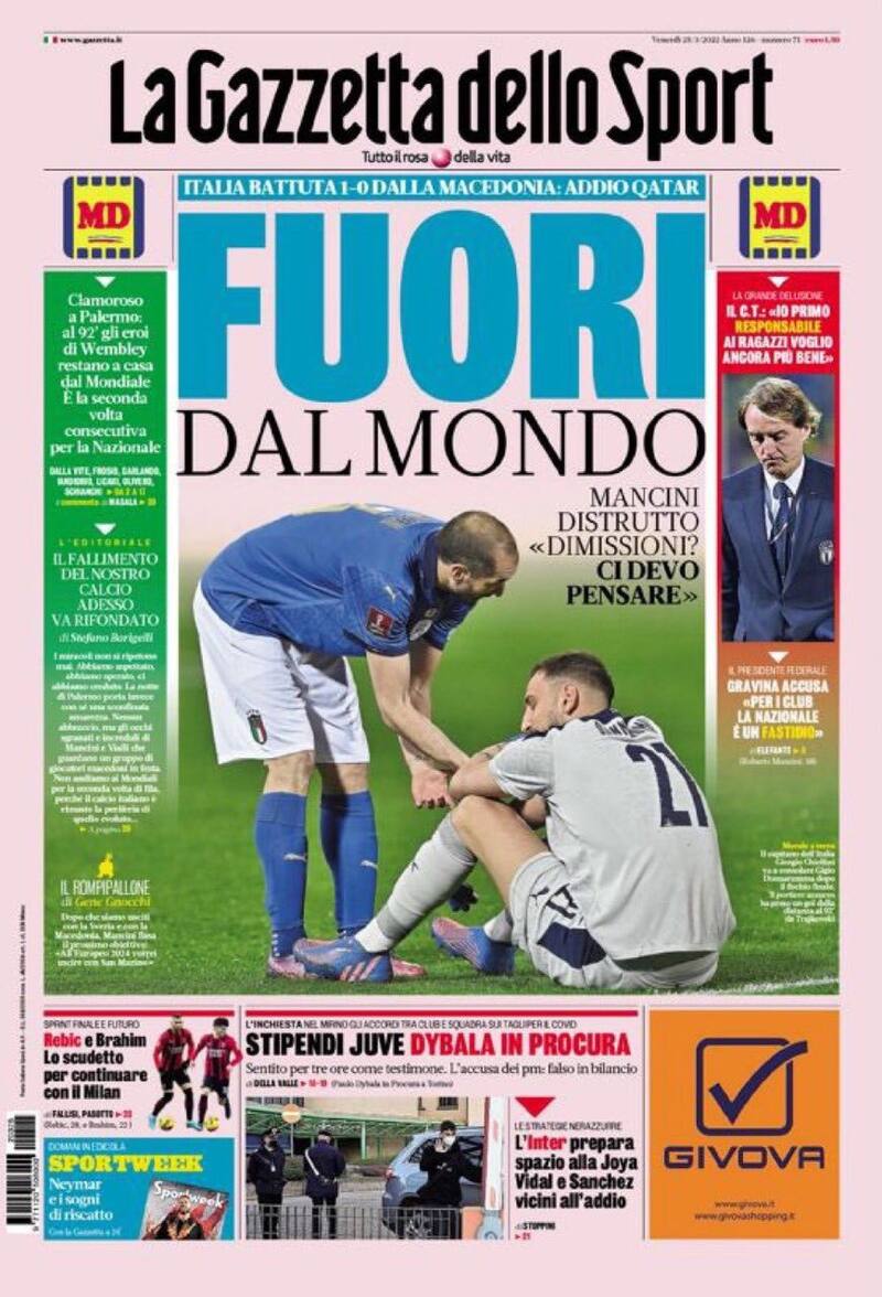 Quedar marginada de dos Mundiales seguidos es algo sin precedentes para una selección de estirpe como la italiana. “Todos estamos destrozados, pero tenemos que comenzar de nuevo”, dijo el histórico Giorgio Chiellini. “Por el momento es difícil hablar de esto. Nos deja un vacío muy grande”, añadió.