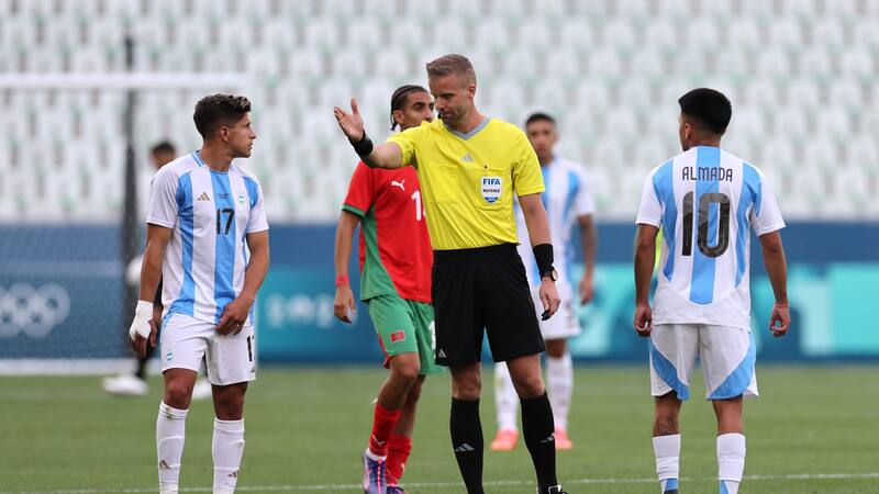 El insólito partido entre Argentina y Marruecos da la vuelta al mundo en el inicio de los Juegos Olímpicos de París 2024. No solo por los bochornosos incidentes de los hinchas africanos en contra de los jugadores transandinos, que obligaron a suspender el encuentro por casi dos horas, sino que por la decisión final del árbitro del encuentro, el sueco Glenn Nyberg, quien al regreso acudió al VAR para revisar la jugada que le dio el 2-2 a la Albiceleste y que desató la furia de los aficionados africanos.