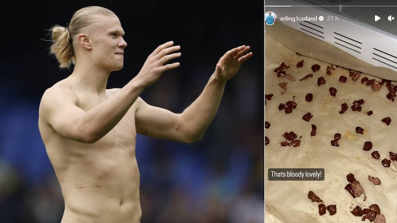 Allí se apreciaba unos trozos de carne esparcido sobre una superficie. “Esto es encantador”, escribió Haaland sobre la imagen. Un nuevo gusto culinario que se dio y que lo mantiene como uno de los delanteros más peligrosos de la Premier.