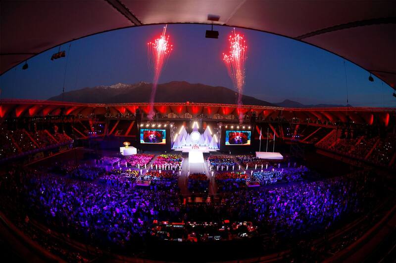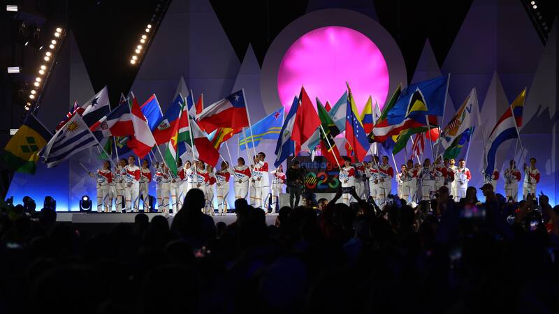 Este domingo, el estadio Bicentenario de La Florida acogió la ceremonia de clausura de los Panamericanos, que arrancó con un retraso de, aproximadamente, media hora. Pero el ambiente era festivo más allá de cualquier alteración del programa. La presencia de los espectadores, los atletas y los voluntarios adornaba de gran manera la escena en el recinto floridano, que tenía una escenografía inspirada en la imagen épica de la cordillera de los Andes y el sol. La estructura del escenario estaba inspirada en la forma de la Chacana, la cruz andina, símbolo milenario de los pueblos indígenas de los Andes.