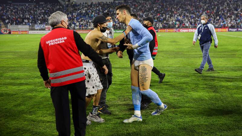 Tras el silbato que marcó el final del encuentro, los fanáticos del conjunto local se metieron en la cancha del estadio de Las Condes. Esto, con el fin de dejar una huella en el recinto. Sea robándose un tablón o tomándose una foto con su jugador favorito.