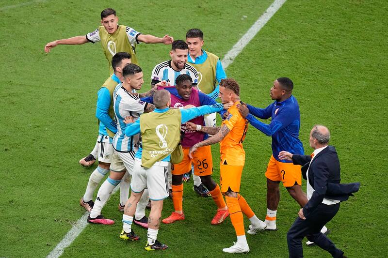 Ambas escuadras se vieron envueltas en varias discusiones durante la totalidad del encuentro, pero, sin dudas, los lanzamientos penales marcaron un final más que tenso. La más destacada ocurrió tras un pelotazo sobre el banquillo neerlandés propinado por Leandro Paredes, quien es uno de los mayores apuntados. En la lupa también está Emiliano Martínez e incluso Lionel Messi.
