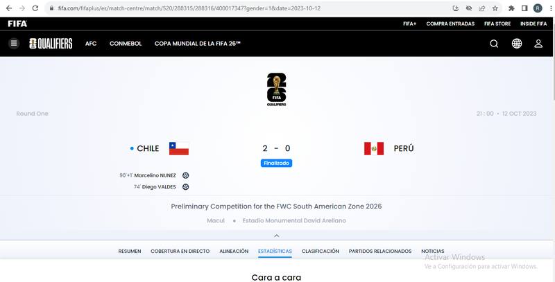 La FIFA rectificó, finalmente. Después de casi cuatro días en que informó de manera errónea los datos del triunfo de 2-0 Chile sobre Perú, el jueves 12 de octubre en el Monumental, el organismo corrigió sus apreciaciones.