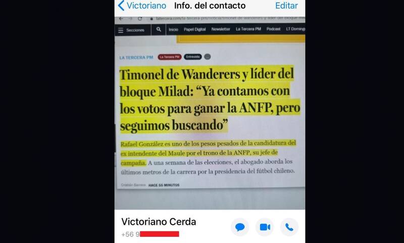 La confianza exhibida por el presidente porteño generó reacciones inmediatas en la lista Por el Futuro del Fútbol, que agrupa a los clubes afines a Antillo. El primero en responder fue Raúl Delgado, presidente de Unión San Felipe. “Ya contamos con los votos para ganar la ANFP, sostiene el presidente de Wanderers en El Deportivo. Festeja por anticipado. No tiene experiencia en este tipo de elecciones. No sea cosa de que se lleve una sorpresa...”, escribió en su cuenta de Twitter. No fue la única reacción. El vicepresidente de Huachipato, Victoriano Cerda, uno de los líderes del bloque de Antillo, puso como avatar en su cuenta de Whatsapp la foto de un pantallazo con el título de la entrevista, subrayado en amarillo.