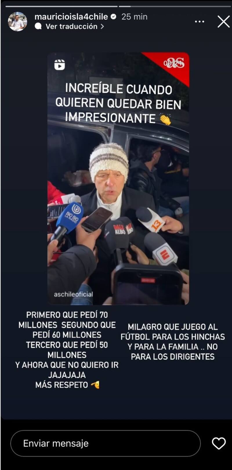 Isla no se quedó atrás. Una story en Instagram, con una imagen en la que Mosa aparecía compareciendo ante los medios de comunicación para dar los detalles relativos a la operación que le involucra, le sirvió para lanzar dados que consideraba certeros. “Primero pedí 70 millones, segundo que pedí 60 millones, tercero que pedí 50 millones y ahora que no quiero ir, jajaja. Más respeto”, exigió. “Milagro que juego a fútbol para los hinchas y para la familia, no para los dirigentes”, complementó, añadiéndole un nuevo elemento a una distancia que parece irreconciliable, al margen de que el timonel albo mantenga una esperanza de retomar las tratativas cada vez menor.