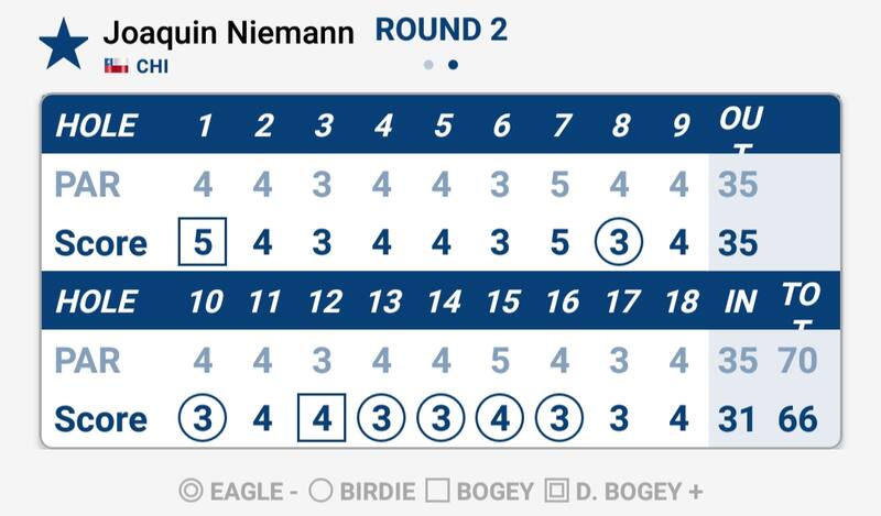 Brillante paso del mejor sudamericano en el ranking mundial. En el hoyo 13, el segundo tiro de Niemann fue espectacular y dejó la pelota servida. En el 14 (ver video), esa aproximación al green no fue perfecta, no acertó, pero desde el fairway hizo caer la pelota.