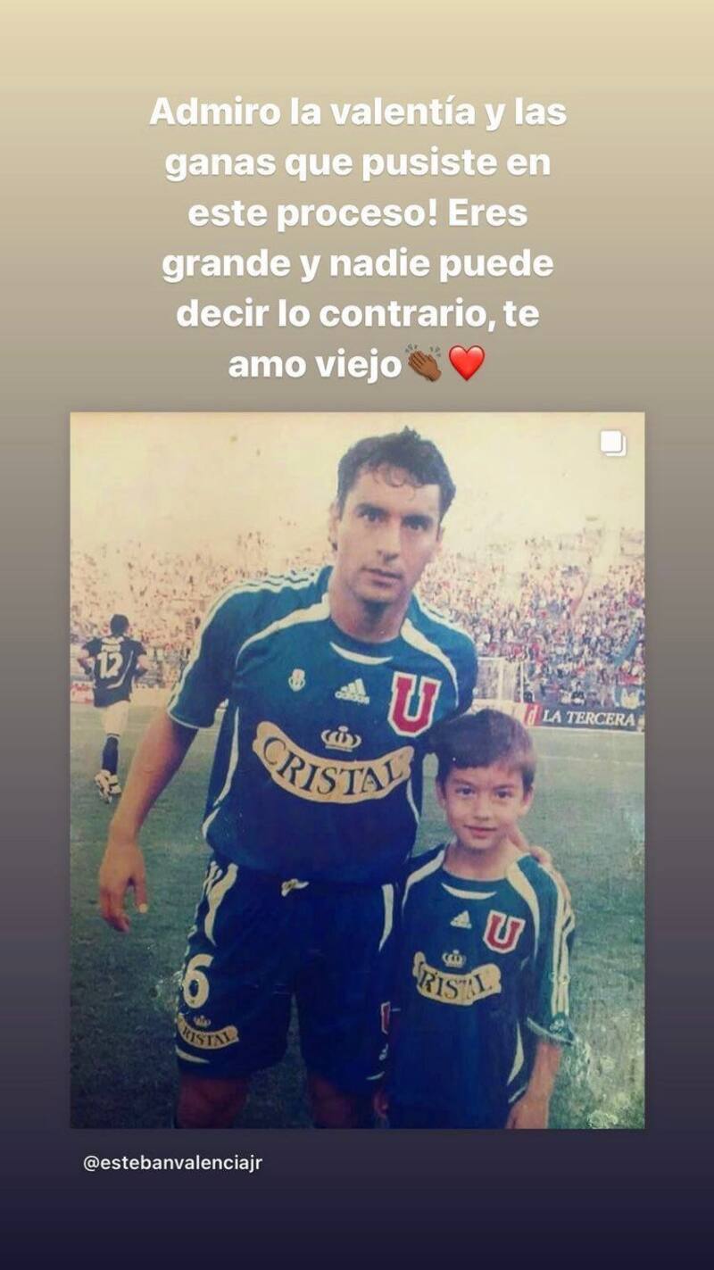 “Admiro la valentía y las ganas que pusiste en este proceso. Eres grande y nadie puede decir lo contrario. Te amo, viejo”, escribe el mediocampista, acompañado de una foto de la época en que ingresaba a la cancha acompañando al histórico mediocampista.