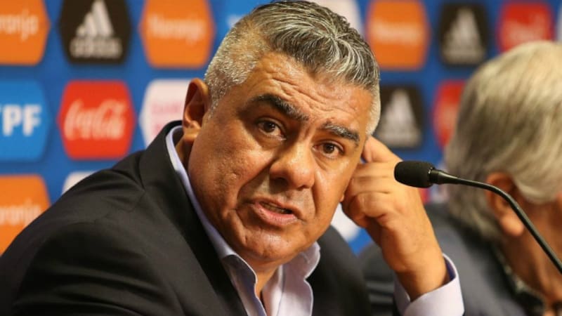 La imagen se tomó las redes sociales este miércoles. Claudio Chiqui Tapia viendo el partido entre Argentina y Canadá mientras un asesor con paño en mano le secaba la transpiración del cuello. Insólita y extraña postal, que tuvo que ser explicada por el mismo presidente de la AFA.