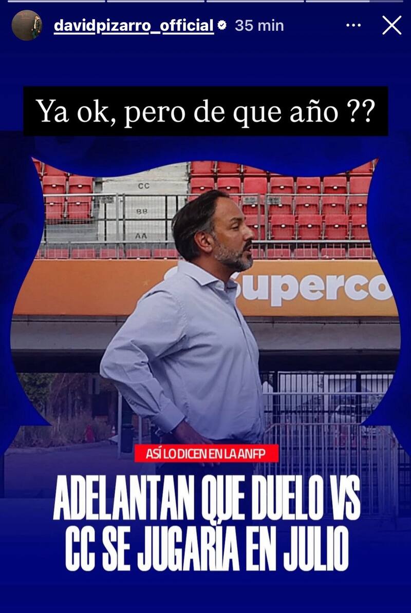 David Pizarro permanece en Italia. Sube videos y fotos a sus redes sociales en donde se le ve trabajando en el Estadio Olímpico de Roma, el mismo en el que brilló durante años defendiendo a la camiseta de la escuadra de la capital italiana. Sin embargo, como lo ha demostrado antes, siempre está atento a lo que sucede en nuestro país con la Universidad de Chile, institución en la que jugó en dos oportunidades durante su carrera. Este lunes utilizó sus historias de Instagram para hacer una irónica pregunta sobre los Superclásicos suspendidos ante Colo Colo.