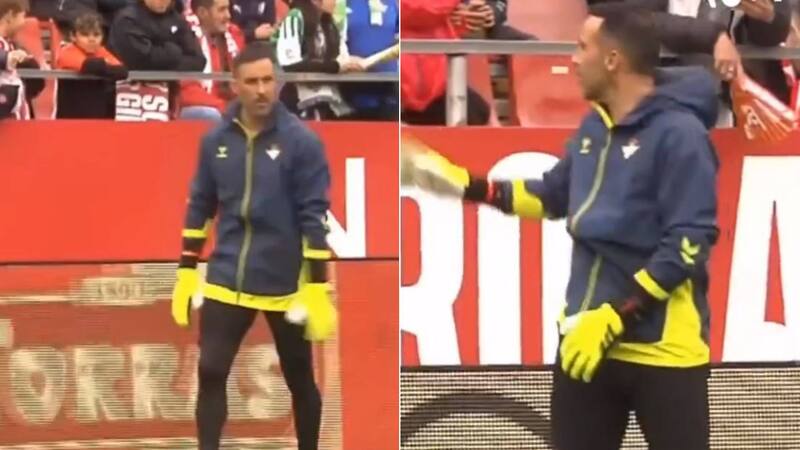 Mientras el portero realizaba el trabajo previo a la competencia, un aficionado del Betis comenzó a solicitarle ropa como recuerdo.