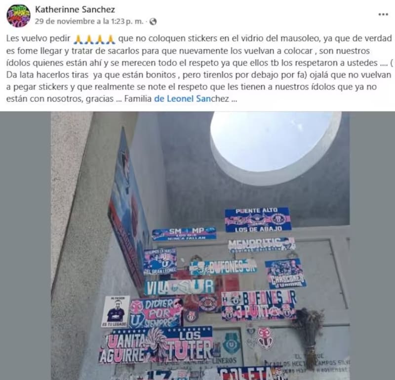Por Lucas MujicaLa llamativa petición de la familia de Leonel Sánchez a los hinchas de la U por el estado del mausoleo del ídolo