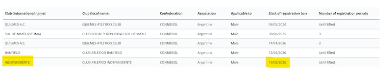 Según la FIFA, el Rojo adeuda nada menos que un millón y medio de dólares a Gaibor. Es lo que se da cuenta al estar incluido en la Lista de Prohibiciones de Registro, herramienta oficial del ente afincado en Zúrich que detalla los clubes de todo el mundo que actualmente enfrenten impedimentos temporales para inscribir nuevos jugadores a raíz de diversas infracciones, como disputas financieras o incumplimientos regulatorios.
