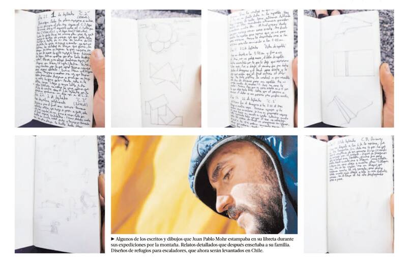 La esencia y el legado de JP, quien perdió la vida en el K2, respiran en los cuadernos que él siempre llevó a las alturas. Los apuntes de su última ruta por el Dhaulagiri hoy parecen el resumen perfecto de quién era este osado escalador. Ahí craneó los refugios que se levantarán en 16 rutas icónicas de Chile, un proyecto garantizado: su fundación y CMPC los construirán en ocho años.