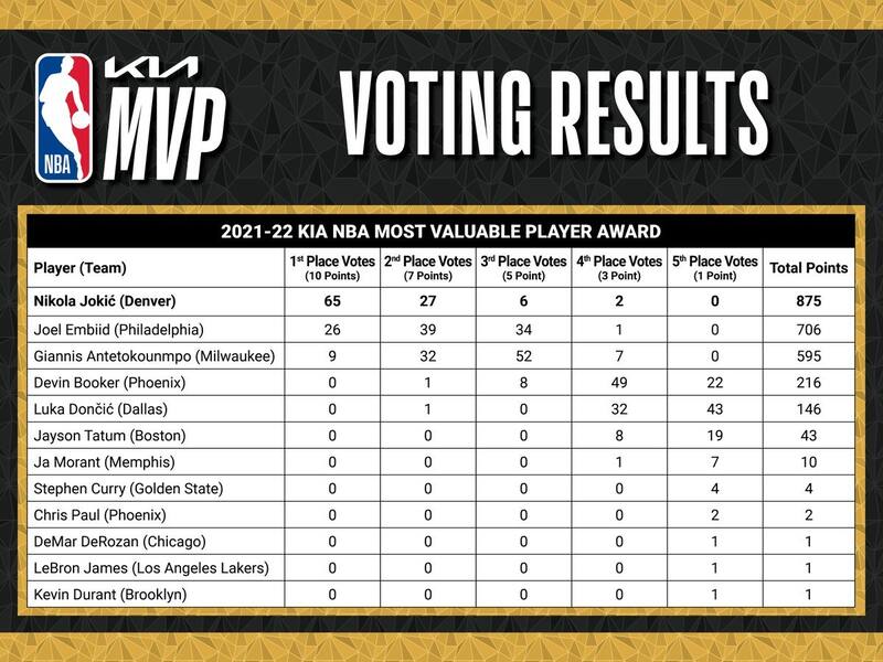 Y es que en 2021 Nikola consiguió su primer MVP al liderar un podio que completaron el camerunés Joel Embiid y el estadounidense Stephen Curry. Para este año, por primera vez en la historia los tres jugadores más votados fueron extranjeros: Jokic, Embiid y Giannis.