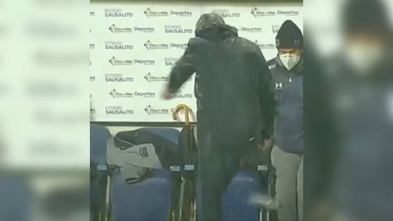 Mientras en la cancha los cruzados conseguían un punto frente a los viñamarinos, otro baldazo en la aspiración de pelear por el pentacampeonato, fuera del campo de juego el técnico daba muestras de su decepción.