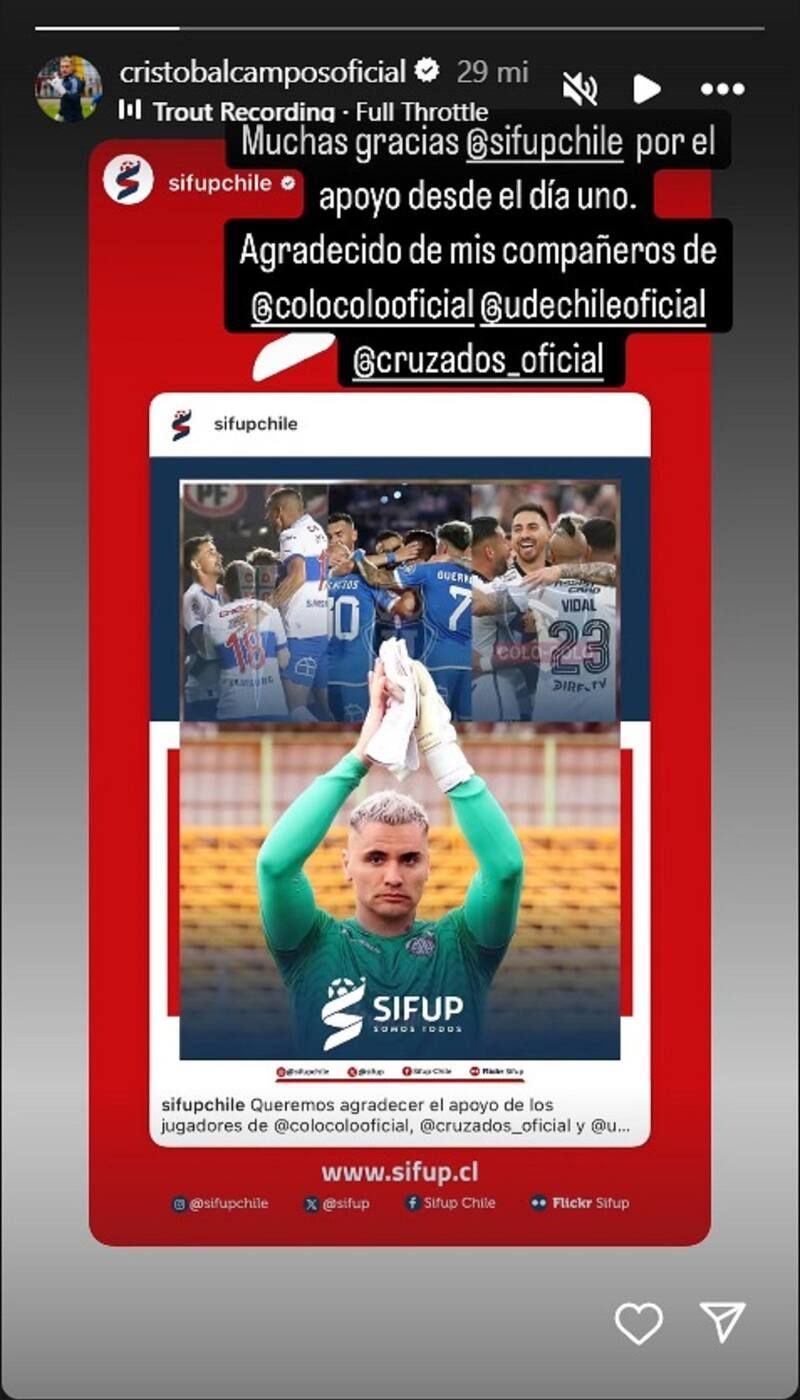 A través de sus redes sociales, el formado en la U expuso su gratitud a la ayuda que recibe de los futbolistas de los tres equipos grandes. “Muchas gracias, Sifup por el apoyo desde el día uno. Agradecidos de mis compañeros de Colo Colo, Universidad de Chile y la UC”, escribió en su cuenta de Instagram.