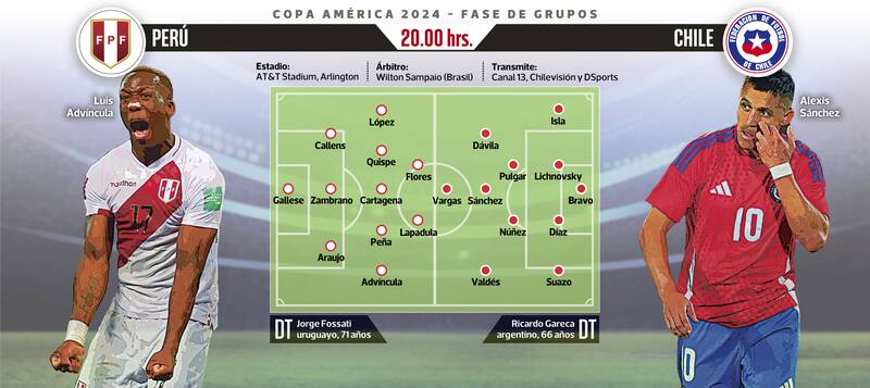 Llegó el momento más esperado para la Roja. Esta noche, a las 20.00, debutará ante Perú en la Copa América de Estados Unidos, un país que le dejó muy lindos recuerdos tras el título de 2016. La sede del partido será el AT&T Stadium de Arlington, Texas, escenario del primer torneo oficial de Ricardo Gareca al mando de la Selección. Al Tigre le sienta bien esta competición, pues no solo superó siempre la fase de grupos en las cuatro ocasiones en que participó al frente de los del Rímac, sino que además celebró un subcampeonato (2019), un tercer lugar (2015) y un cuarto puesto (2021).