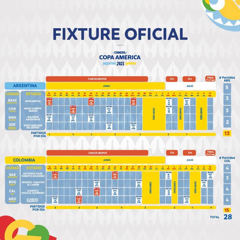 La Conmebol confirmó el fixture del torneo de selecciones más importantes del continente. Chile abrirá el certamen ante uno de los organizadores, el 13 de junio, y jugará dos partidos en Mendoza.