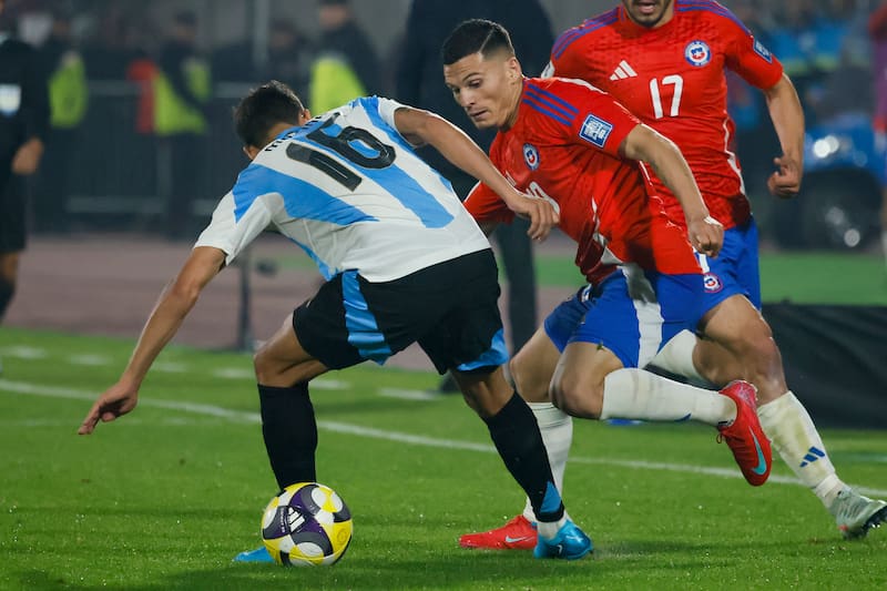 Chile salió con el freno de mano puesto, por el planteo del entrenador. Mientras que Argentina no apuraba en el tránsito del balón, aprovechando que la Roja le daba espacio para manejar. La virtud del cuadro de Lionel Scaloni es que no necesita dominar ni avasallar para concretar. Con posesiones largas, anestesia el juego y cuando encuentra espacios, asesta el golpe. Así sucedió con el 1-0 de Julián Álvarez, en los 16′.