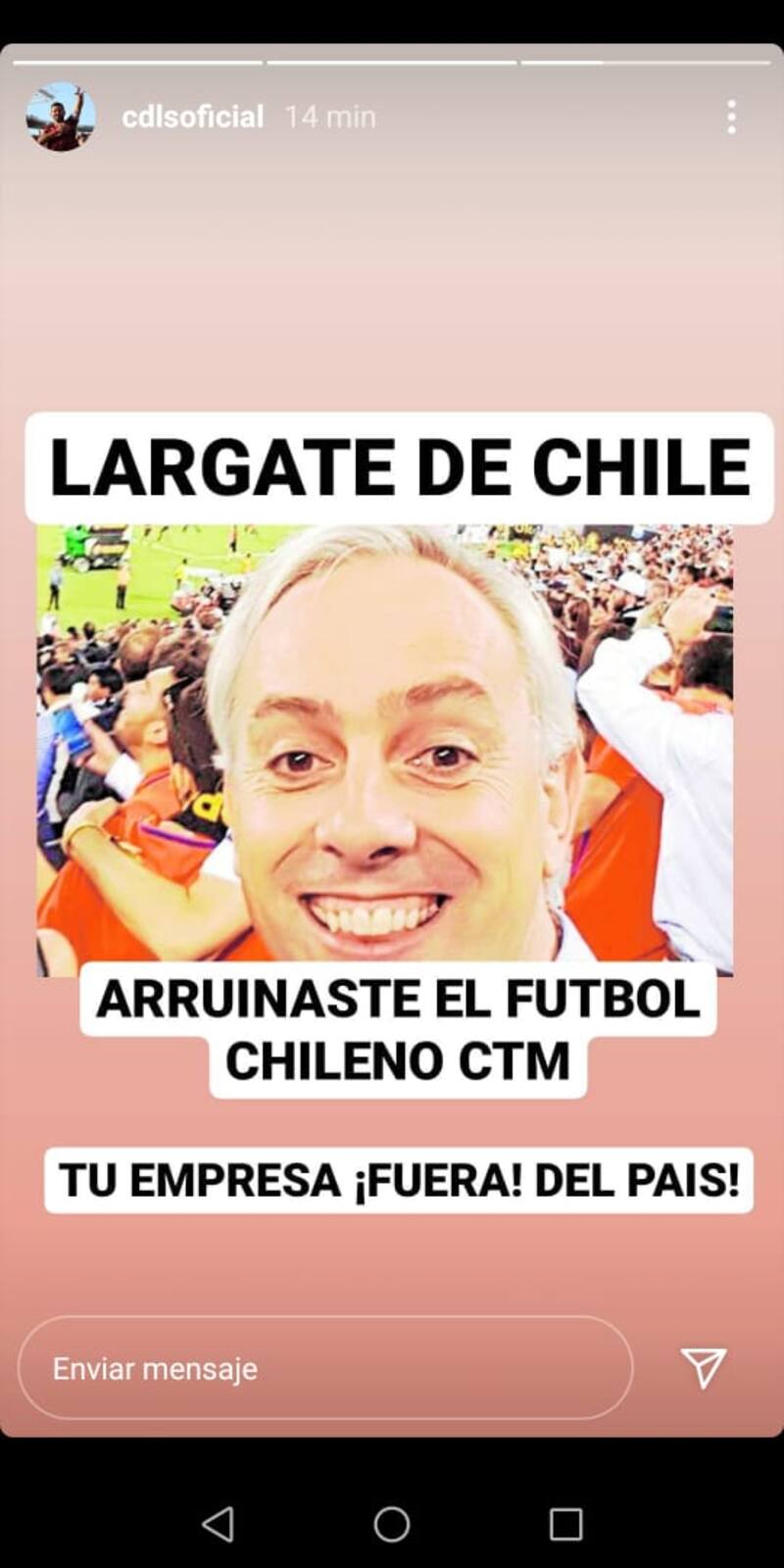Y hay más. El último destinatario de las ofensas es Felicevich. “Lárgate de Chile. Arruinaste el fútbol chileno. Tu empresa, fuera del país”, le exigen.