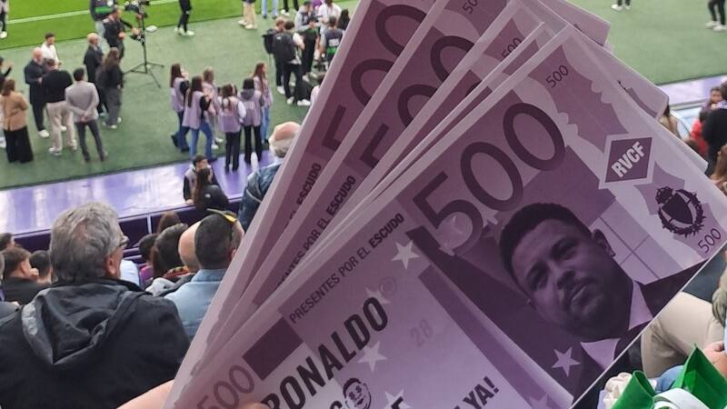 Ante del duelo ante el Barcelona, que perdieron 1-2, se imprimieron 60 mil billetes con la cara de Ronaldo para ser repartidos en el José Zorrilla. La idea era expresarle al brasileño que si quería dinero para irse, ahí estaba. Decenas de voluntarios repartieron los papeles en todas las entradas del estadio y le dieron instrucciones al público que los lanzaran al aire en el minuto 12 del encuentro.