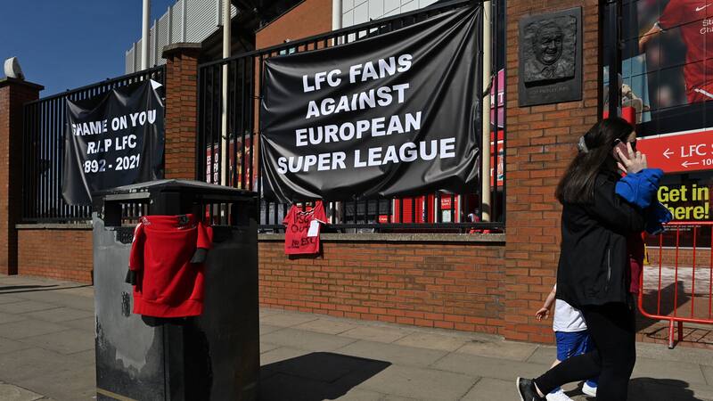 La creación de la Superliga Europea, anunciada este domingo y que tiene a Florentino Pérez como presidente ha desatado diversas críticas y manifestaciones, como la de los hinchas de Liverpool quienes colgaron lienzos en contra.