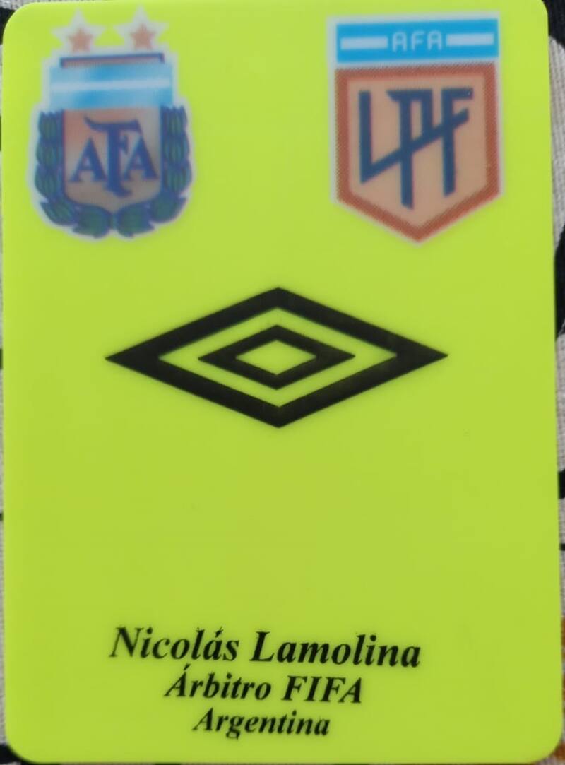 Lo que está claro es que la tarjeta personalizada de Maza no es una idea suya. “Hace pocos días vino una terna a los partidos de Chile con Cuba y República Dominicana. Uno de los árbitros era Nicolás Lamolina, hijo de Francisco, quien me regaló una tarjeta que viene con el nombre de él. Me llamó la atención”, confidencia, por ejemplo, Gastón Castro, ex presidente de la Comisión de Árbitros. En el caso de las tarjetas del argentino, se pueden observar su nombre, los logo de la AFA y de la Liga Profesional de Fútbol de Argentina y, además, el de una marca deportiva justo en el centro, la zona más visible.