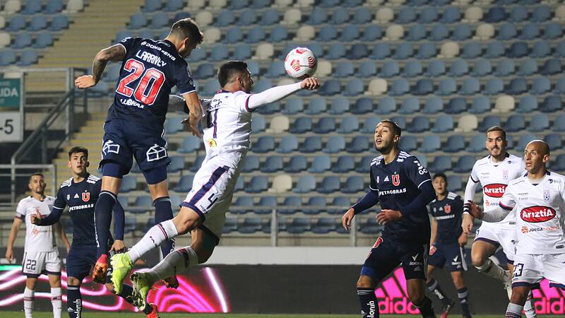 Melipilla empezó mejor, pero fue la U la que pegó en su primera llegada. Marcelo Morales centró con absoluta libertad desde la izquierda para que Joaquín Larrivey marcara la apertura de la cuenta. El delantero le ganó en el salto a Gonzalo Lauler y mandó su cabezazo al fondo de la red.