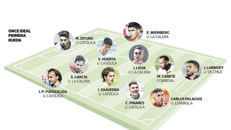 Sumando rendimientos, estadísticas y capacidades individuales, La Tercera armó un 11 ideal de la primera rueda. La UC, como era de esperar, domina con cinco titulares. Y al igual que en torneos anteriores, el cruzado Fuenzalida se alza como el mejor del torneo, por su regularidad y trascendencia. En tanto, el hispano Carlos Palacios, el segundo mejor asistidor del torneo junto a Bolados, ha sido la gran revelación.