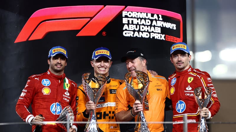 El piloto británico fue el más rápido en la carrera disputada en Emiratos Árabes Unidos. Su primer puesto, sumado al décimo de Oscar Piastri, les valieron para quedarse con el Mundial. El segundo puesto de Carlos Sainz y el tercero de Charles Leclerc, que remontó 16 posiciones, no le alcanzaron a Ferrari.