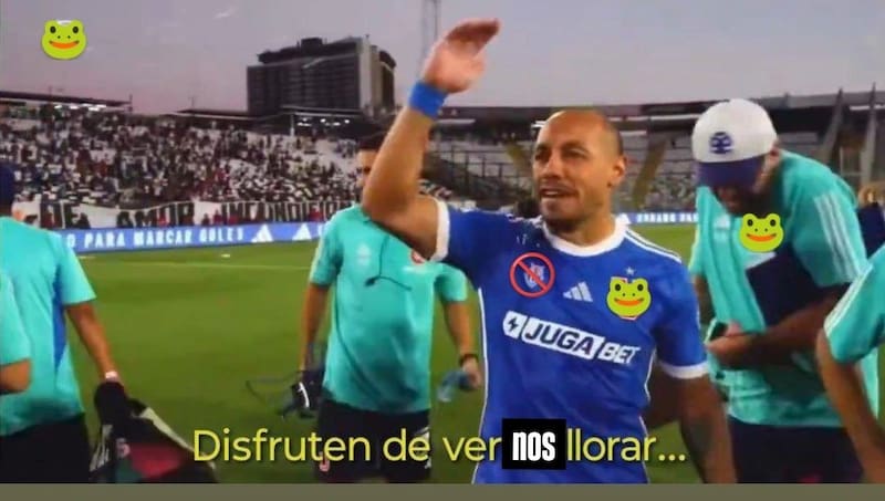 Entre las publicaciones destaca una con la figura de Marcelo Díaz en la que aluden a una frase que lanzó a comienzos de la temporada cuando los azules se quedaron con el Superclásico disputado en el estadio Monumental: “disfruten de verlos llorar”, lanzó el volante azul en la oportunidad.