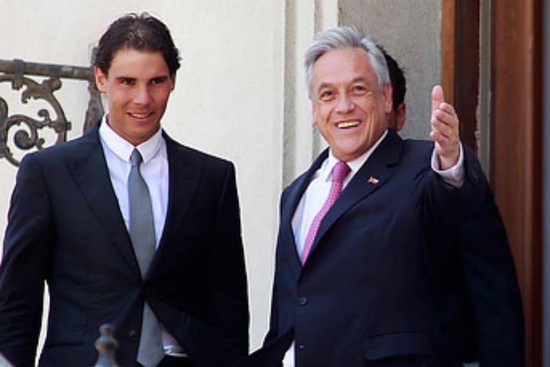 En sus pasos por el país en aquel 2013, Rafael Nadal visitó ambas veces el Palacio de La Moneda. Ahí fue recibido por el fallecido exPresidente Sebastián Piñera y otras autoridades, como la exministra secretaria general de gobierno Cecilia Pérez.