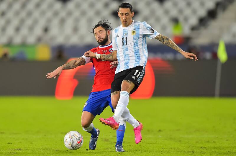 Rodrigo de Paul: El volante de Udinese italiano intentó darle rapidez y cambio de ritmo al equipo argentino por el costado derecho, aunque su trabajo fue casi imperceptible ante la regularidad del medio chileno. Se vio opacado por el juego de Lionel Messi, no encaró mucho, pero en el segundo metió un pase gol que González desperdició.