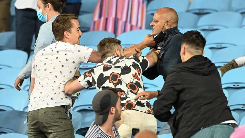 Tras ello, integrantes del equipo de seguridad se dirigieron hasta el lugar de la pelea y le solicitaron a los fanáticos que rechazaron el uso de barbijos a retirarse del Rod Laver Arena, mientras una gran parte del estadio ovacionaba que estos se retiraran del lugar.