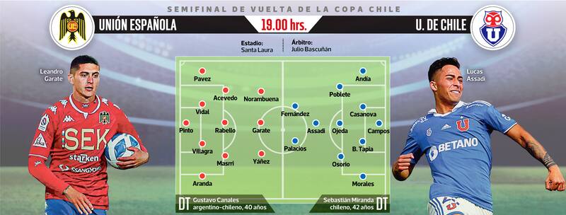 Unión Española y Universidad de Chile darán vida este miércoles al partido de revancha que busca al segundo finalista de la Copa Chile. Un duelo que podría entregarle a cada equipo la chance de salvar el año clasificando a la Copa Libertadores.