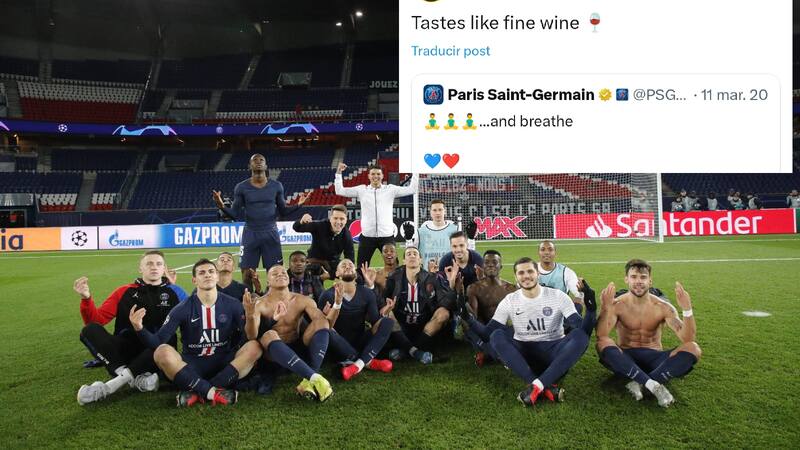 En una historia en la que se lee “sabe a buen vino”, la institución amarilla replicó la imagen de Kylian Mbappé y sus compañeros en la controvertida postura de yoga para asumir que se inicia una nueva rivalidad en el fútbol europeo.