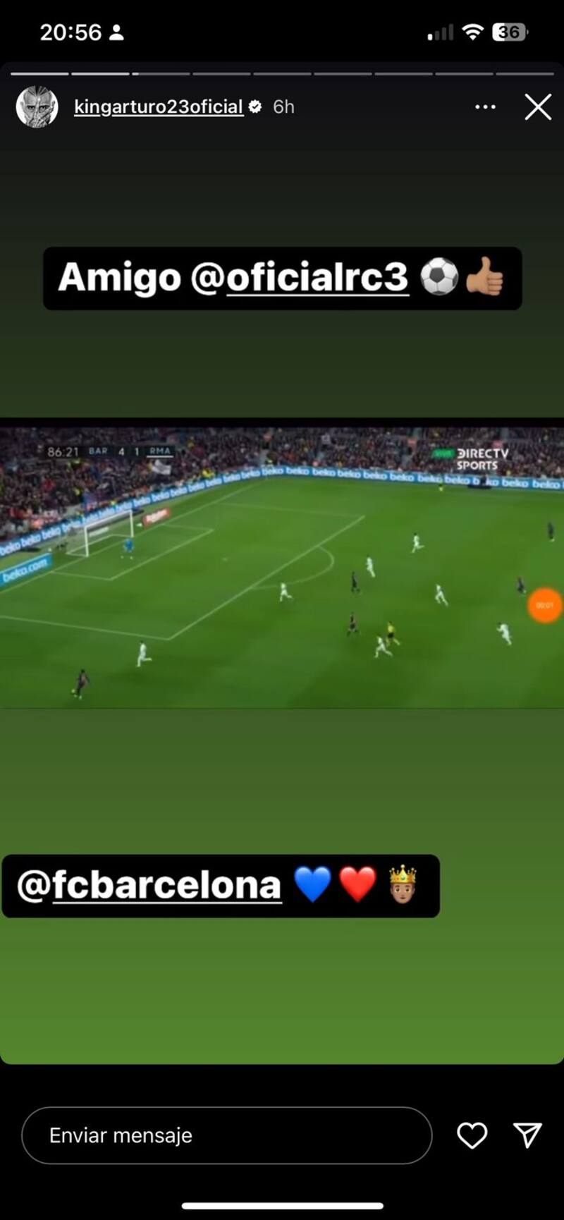 Arturo Vidal no se quedó callado. Mediante las redes sociales, le respondió a Roberto Carlos. No utilizó su voz, ni palabras. Compartió dos videos en los que le hace goles al campeón vigente de Europa, ambos de cabeza. El primero defendiendo al Barcelona, en la goleada 5-1 en 2018. En esa publicación, Vidal etiquetó al exlateral. Luego, puso en las redes otro video en el que le anota con la camiseta del Bayern Múnich, por los cuartos de final de la Champions 2016-2017.