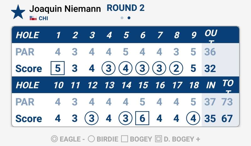 Joaco encadenó cinco birdies de manera consecutiva, entre las banderas cuatro y ocho, que lo hicieron subir del puesto 22º al sexto. En los hoyos 4, 6 y 7, todos pares 4, el nacional dejó la pelota servida para birdie con su segundo tiro. En el 5, un par 5, otra vez el segundo tiro fue clave, pues llegó al green con ese intento. En la bandera 8, que es par 3, el tiro de salida no fue perfecto, pero Niemann acertó un putt largo.