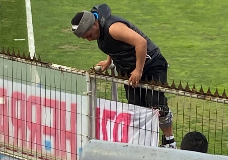 En medio del caos, el presidente de Cruzados, Juan Tagle, bajó al campo de juego para intentar imponer algo de cordura. Antes del duelo, la máxima autoridad del club estudiantil había realizado un sentido llamado a los hinchas a no generar destrozos ni llevarse pertenencias del estadio que estaba cerrando sus puertas, considerando que pretenden reutilizar varios de ellos.