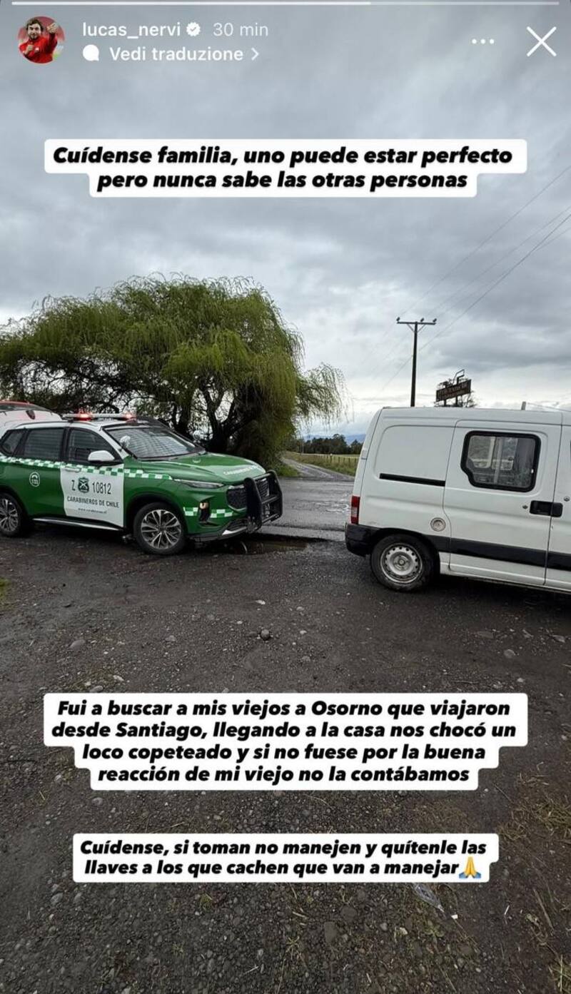 Según el lanzador de disco, el incidente ocurrió cuando fue a buscar a sus padres a Osorno. “Fui a buscar a mis viejos a Osorno que viajaron desde Santiago, llegando a la casa nos chocó un loco copeteado y si no fuese por la buena reacción de mi viejo no la contábamos”, relató.
