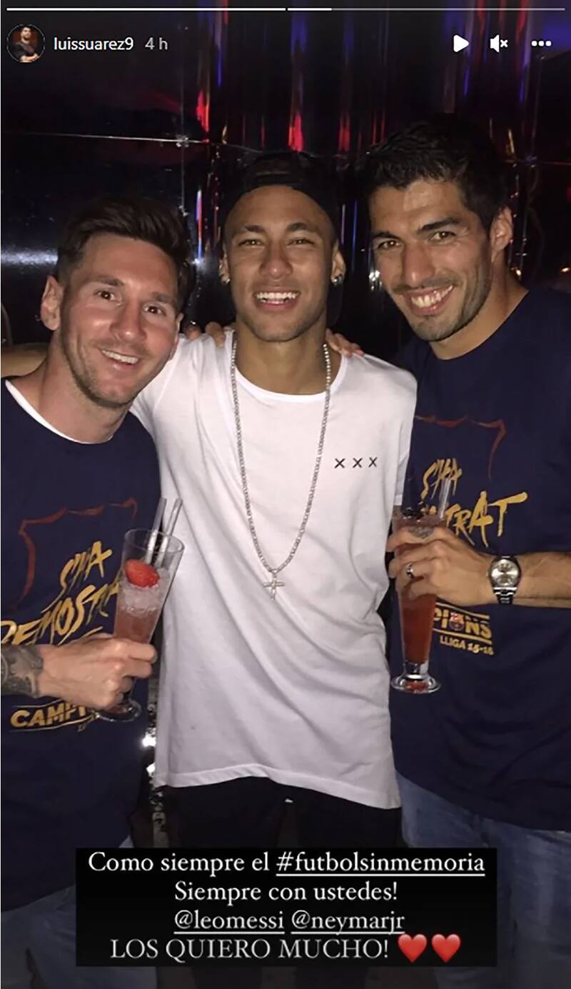 El delantero uruguayo subió una foto a Instagram de los tres juntos en su época en el Barcelona. "Fútbol sin memoria", decía parte del mensaje que colgó, recordando la última temporada en que los blaugranas conquistaron la UEFA Champions League.