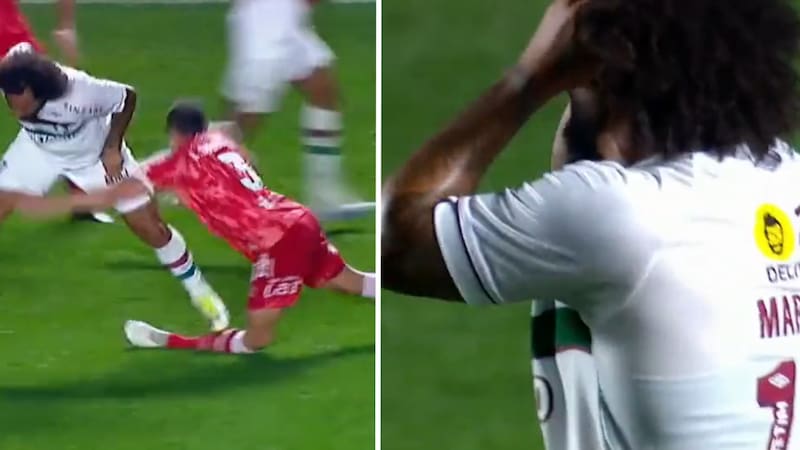 El exjugador de Real Madrid manejaba el balón y piso por accidente a Luciano Sánchez, quien sufrió una lesión expuesta frente a la inconsolable reacción del jugador de Fluminense, quien fue expulsado por el juez chileno Piero Maza.
