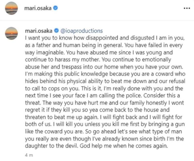 Por Julián ConchaLa impactante confesión de Mari Osaka, hermana de Naomi, que acusa sufrir abusos de su padre: “Si vuelves con intenciones de golpearnos, te mataré”