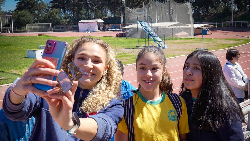 En el marco del programa Conoce a tu Estrella, la atleta y su madre Ximena Restrepo compartieron con niñas y niños del Liceo Bicentenario Santa María de Las Condes, donde hablaron de sus experiencias en este deporte.