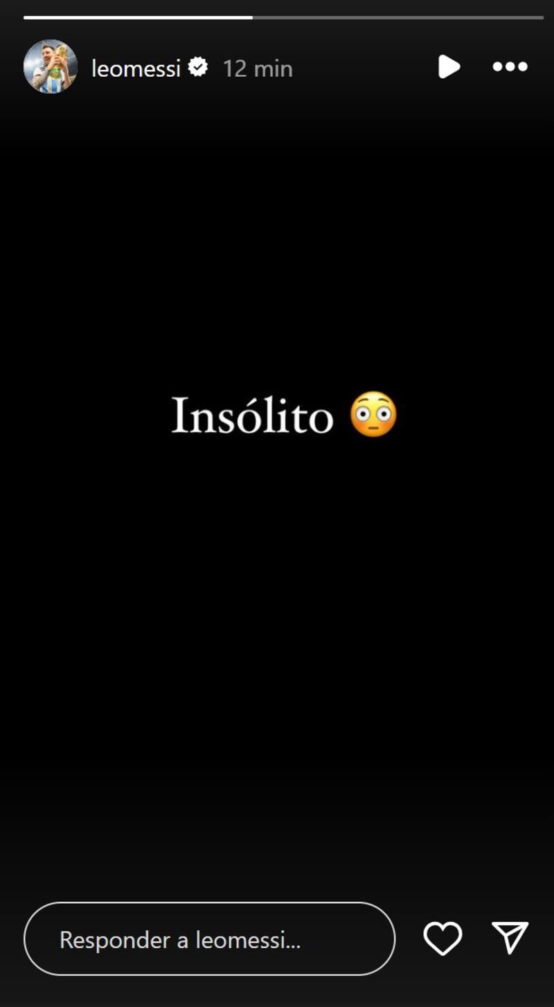 “Insólito”, acompañado de una cara de asombro fue el mensaje que compartió la máxima figura del Inter Miami en una historia de Instagram. No necesita mucho más para generar una amplia repercusión. Solo en esa red social le siguen 504 millones de personas.