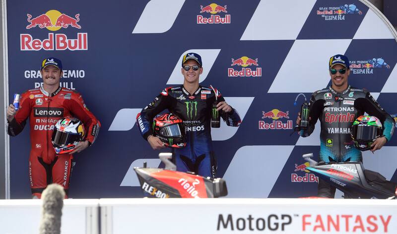 Yamaha golpea primero con sus dos pilotos liderando la carrera de este domingo. En un circuito donde no prevalece la velocidad, las motocicletas japonesas fueron las que mejor rendimiento tuvieron sobre el asfalto español. A Quartararo lo seguirá su compañero Franco Morbidelli y el australiano Jack Miller.