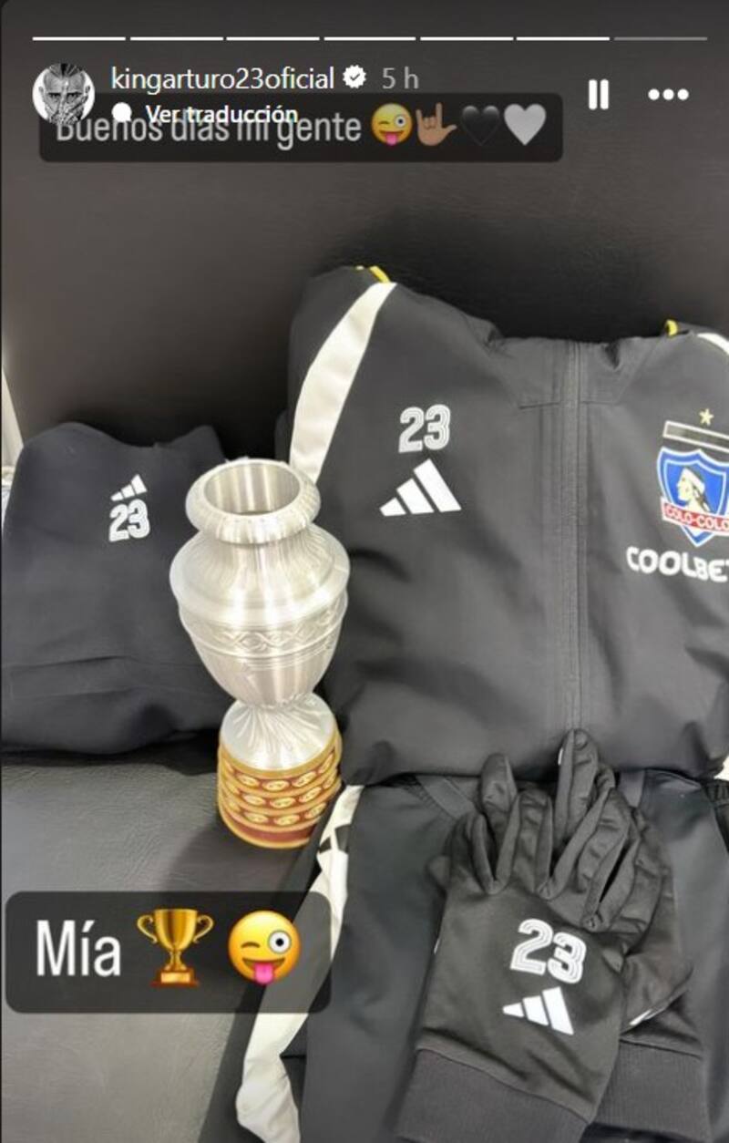 Añade, en la línea del lenguaje que se utiliza en las redes sociales, dos emojis: uno de una copa y otro en señal de sarcasmo. El cuadro lo completa la indumentaria que utilizaría para entrenar junto al plantel de Colo Colo, que luce el número 23, que le ha acompañado en buena parte de los capítulos más gloriosos de su carrera.